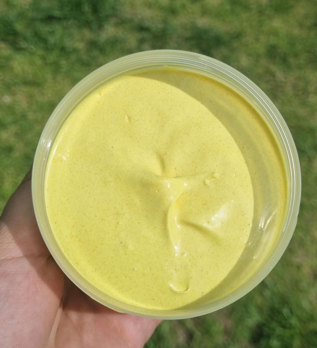 Shea Butter, coconut oil, vitamin E oil, Tumeric, lemon essential oil