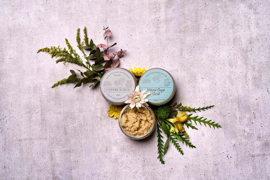 Brown Sugar Body scrub with Shea butter, Coconut oil, Vitamin E oil, Grapeseed Oil, Sweet almond oil essential oil and your scent of choice.